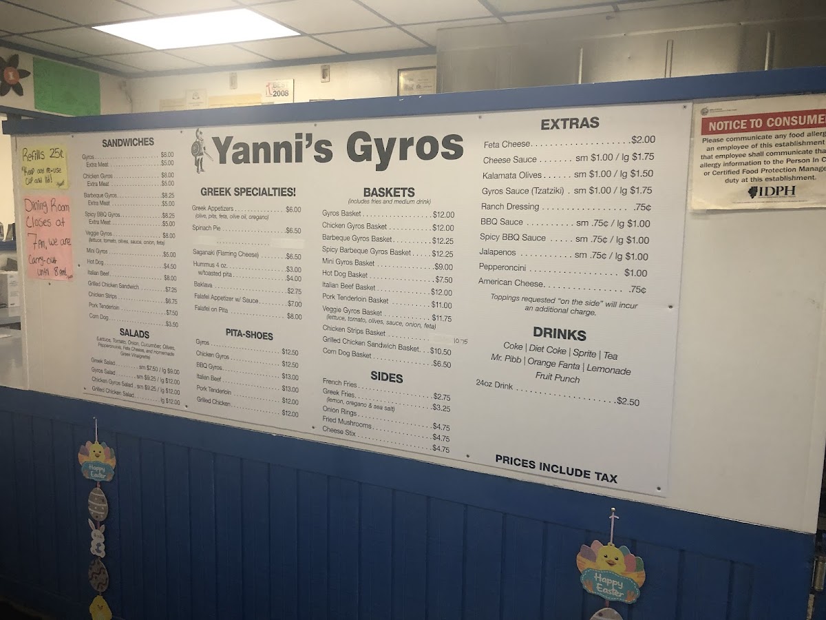 Yannis Gyros is a straightforward gyro restaurant on Adlai Stevenson Drive in Springfield that draws a steady local crowd looking for quick, satisfying Greek-inspired meals. The vibe is relaxed and unpretentious—something between a neighborhood takeout spot and a casual dine-in joint. The dining area is cozy, fitting for a low-key lunch or an easy weekday dinner without the fuss.